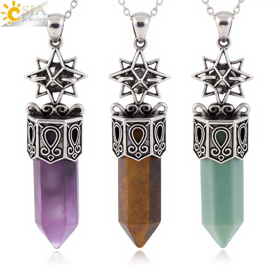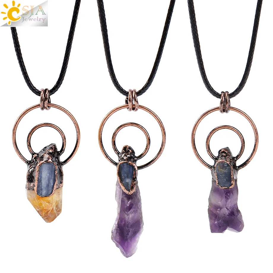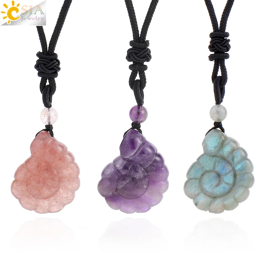CSJA Heart Quartz Pendant Necklace for Women Healing Natural Stone Amethysts Crystal Charm Glass Beads Choker Christmas Gift T024 | |