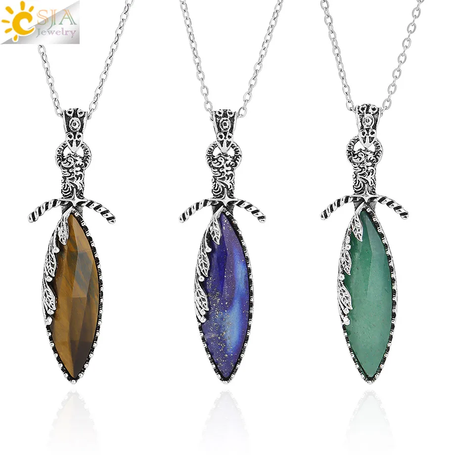 CSJA Heart Quartz Pendant Necklace for Women Healing Natural Stone Amethysts Crystal Charm Glass Bead Choker Christmas Gift T024
